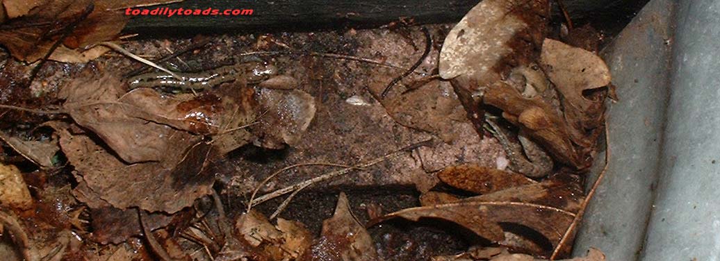 In another window well, I found this pickerel frog. These frogs have similar requirements to toads. They all seem to enjoy life in the well together. Still, I would not house them together indoors. As a matter of policy, I prefer to always keep different species in different tanks. In the wide open space of the outdoors, animals have more opportunity to avoid eachother or to escape than they would in a small enclosed tank. We do not advocate taking healthy, normal animals out of nature.